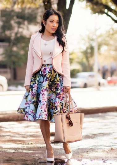 В жаркое время предпочтение отдается натуральным легким хлопчатобумажным и шелковым изделиям. Длинная или короткая она приятно обвевает ноги, и придает непринужденность. Когда наступают холода, то лучше приобрести трикотажную или шерстяную юбку. Тянущийся материал будет облегать фигуру и подчеркивать бедра. Если они довольно пышные, то выберите более плотную или легкую ткань с максимальной длиной. Для деловых встреч идеальная длина – до середины колена. К ней подойдет легкая блузка, водолазка и приталенный жакет. Обувь на каблуке выглядит более стильно, чем спортивные модели.